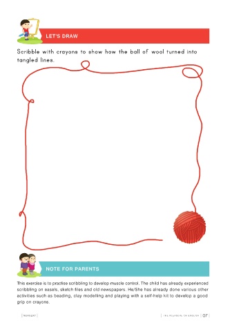 This exercise is to practise scribbling to develop muscle control. The child has already experienced