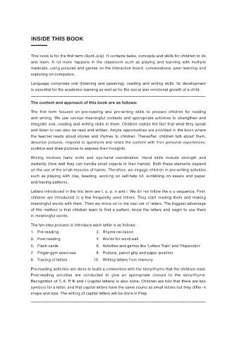 The first term focuses on pre-reading and pre-writing skills to prepare children for reading