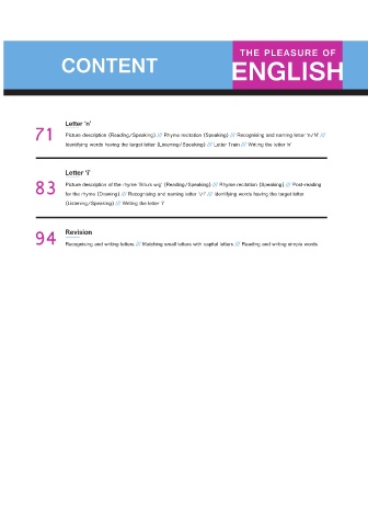 71 Picture description (Reading/Speaking) Rhyme recitation (Speaking) Recognising and naming letter ‘n/N’