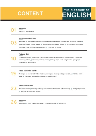 23 Picture description Reading text using letter sound relationship and sight vocabulary Writing simple words